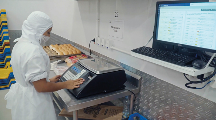 É importante destacar também que as mercadorias carregam um código de barras em todas as etapas produtivas, possibilitando a rastreabilidade do processo. No setor de embalamento, o operador consegue visualizar o produto que está sendo pesado, como também a quantidade necessária e para qual loja deve ser enviada.